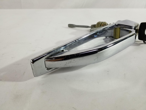 Mercedes Door Handle Left Front with Key NOS. New by Genuine Mercedes-Benz. New Old Stock, in bag. Chrome may have a few spots; likely easy to polish out. No longer available new from Mercedes-Benz. See photos for exact condition.
