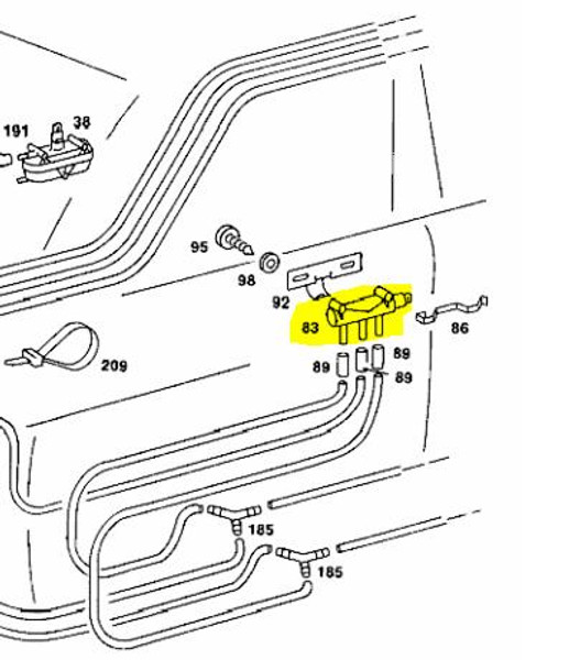 Used OEM Mercedes Switchover Valve/Check Switch for Vacuum Door Lock System from behind Driver's Door Panel.