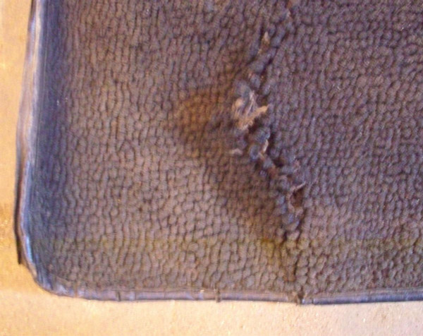 Carpet has a large dry rotted area. Back side foam pad looks great.