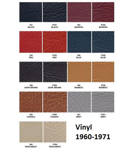 Photos are of later style seat covers with a different pattern of vinyl than you will receive. Please ask us before purchase if you have any questions about colors.