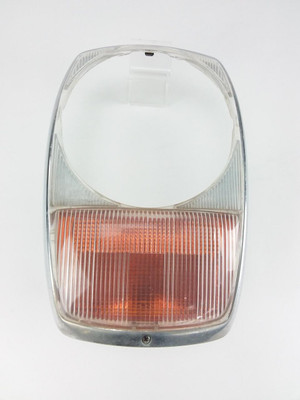 OEM Mercedes Used Headlight Bezel Door with Turn Signal Lens for the Left or Right Front Side. Includes chrome rim. Early style bezel with no visible screws from the front.