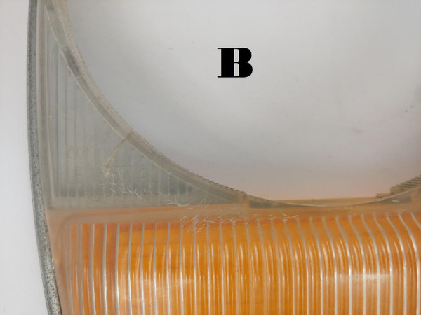 Grade B: Has some hairline cracks and crazing throughout, may have one crack an inch or two long. May have mild color fading. Chrome may be cloudy or have 1 to 2cm scratches.