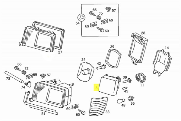 OEM Mercedes Used Headlight Lens Assembly for the Front Left (USA Driver's) Side.