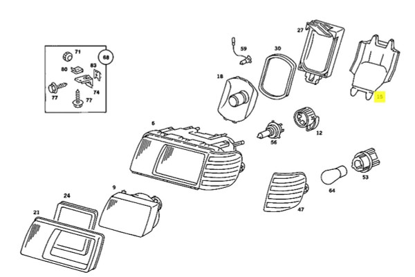 New OEM Mercedes Cap for the Front Left or Right Headlight Lens Assembly, either side.
