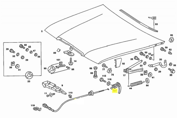 OEM Mercedes Used Lever Handle for the Hood Release Cable.