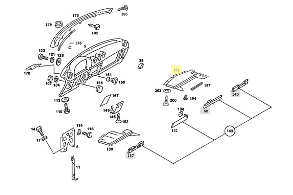 New OEM Mercedes Lower Trim Panel in Black for underneath the dashboard on the Right (USA Passenger's) Side.