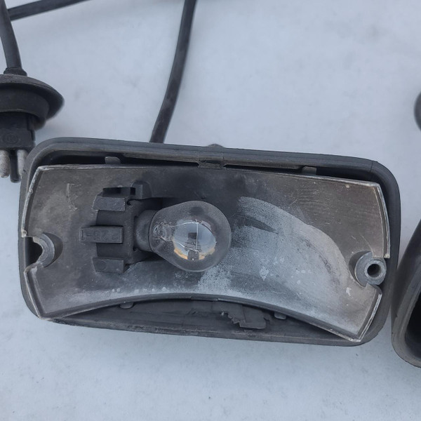 Includes housing and wiring for US-style rear bumpers. One unit has some damage to the screw mount but should be functional, and there's some wiring exposed that will need sealed.