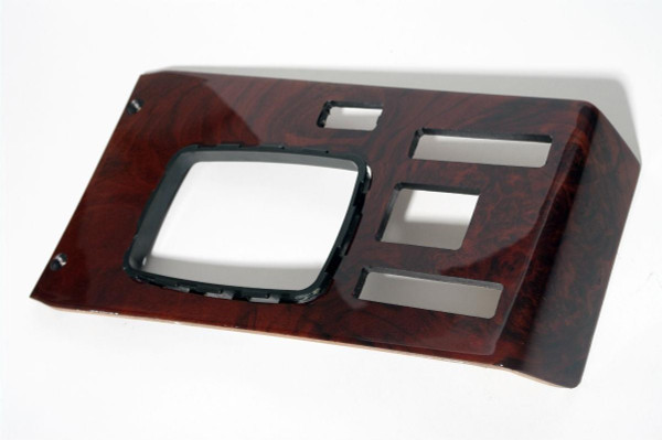 Restored Mercedes OEM Wood Trim Plate for Around the Automatic Shifter in the Center Console, in Burl Wood. Professionally Restored by a Classic Mercedes Wood Trim Specialist.