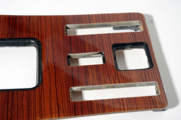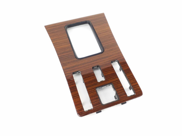 Restoration of YOUR Mercedes OEM Wood Trim Plate for Around the Automatic Shifter in the Center Console, in Zebrano or Burl Wood. Professionally Restored by a Classic Mercedes Wood Trim Specialist.