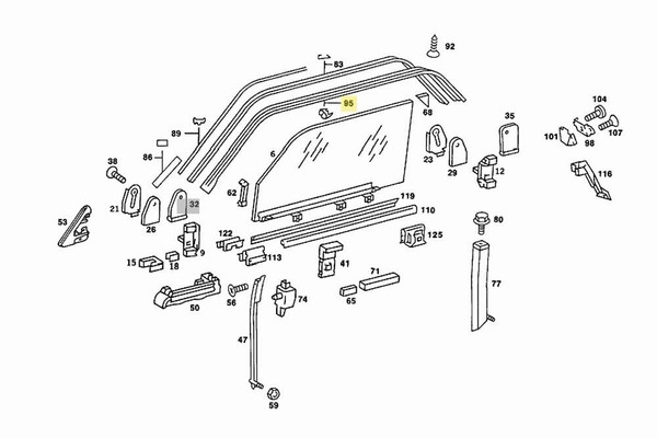 New OEM Mercedes Rubber Weatherstrip Seal for the Top of the Front Left (USA Driver's) Window. Fits W123 Coupe and Not compatible with W123 Sedan or Wagon ModelsPlease verify fitment in the Vehicle...