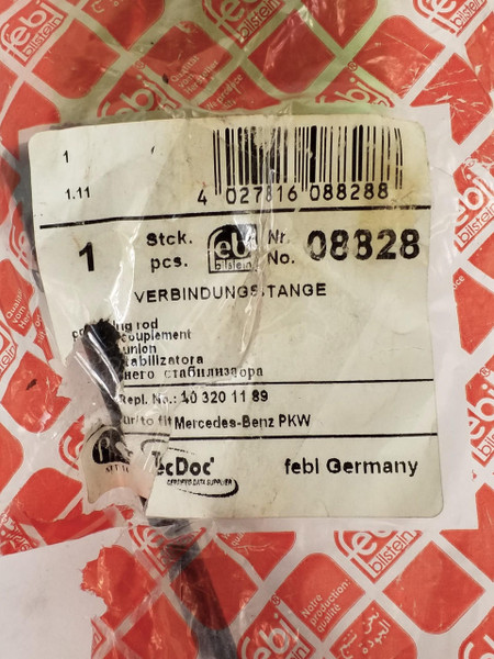 Mercedes Stablizer Link Front Pair NOS. New by Febi Bilstein. New Old Stock, in bag. This rod connects the front torsion bar to the steering knuckle.