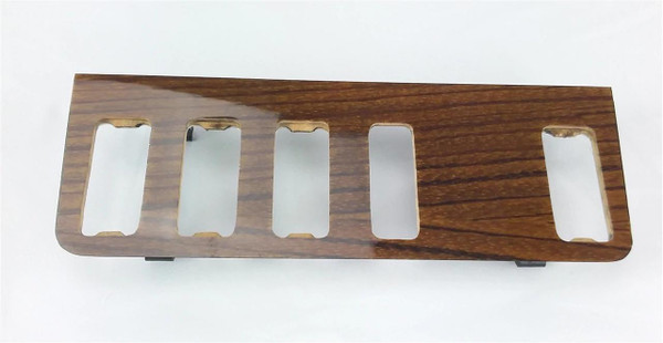 Restored Mercedes OEM Wood Trim Plate for the Electric Switches in the Center Console (just below the dashboard and above climate control), in Zebrano. Professionally Restored by a Classic Mercedes Wood Trim Specialist.